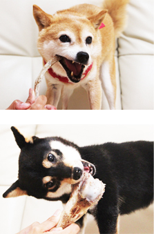 | 骨は、食べたことがない子だと、たくさん食べ過ぎることで便秘や、下痢になる場合もあるので 最初は1日2分間くらいから始めて下さい。 自然の骨なので、時期や個体によって、大きさ等にばらつきが出ますので、ご了承下さい。 食べている数分の間は必ずお家の方が手に持って、見守りながらあげて下さい。 ★保存方法・消費期限★ 食べた後の骨は、乾かしてから、冷蔵庫で保管して下さい。消費期限は半年程度です。 開封後は冷蔵庫にて長期保存が可能ですが、より一層おいしく保存するために、3ヶ月に1度、天日干しするか、オーブンで焼いて下さい。 オーブンで焼く目安は180℃で、2分です。 |