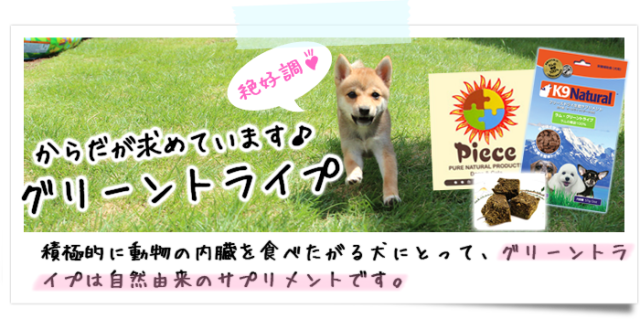 | 犬、特に日本犬に関しては、古来から、ねずみ、とり、うさぎ等をまるまま捕食してきました。つまり、胃や腸を内容物ごと食べていたのです。内容物のほとんどが、半消化された穀物や野菜、果物、草、木のみ、木の皮です。突き詰めると、自分で安心、安全な環境や飼料を使い育てたウズラ等をまるまま食べさせてあげるのが一番良いのですが、その様にはできませんし、かと言って、犬を野やに放つこともできません。野生のきつね、たぬきと同様の生活をしない限り、理想の食事をすることはできません。 そこで、少しでも理想の食事に近づけるため、グリーントライプがとても有効となります。 グリーントライプは草食動物の第4の胃のことを言います。この場所は、半消化・発酵中の草や木の実、木の皮等と、腸内細菌やバクテリアがたっぷりと入っています。 生の状態ですと、衝撃が走る程の臭いで、保存や食べさせ続けてあげることがとても難しいので、栄養素や細菌、バクテリア等を極力壊さずに、臭いを抑えたフリーズドライした製品が扱い易く、とってもお勧めです☆ こすず荘では長期に渡り、若犬からから老犬まで、食べさせてきました。結果、体調がとても良く、出産後の回復にもとても効果がありましたので、最近では、仔犬ちゃんにも食べさせて育てており、高い効果を実感しております。 毎日の健康管理のために、安心して食べさせてみて下さいね♪ |